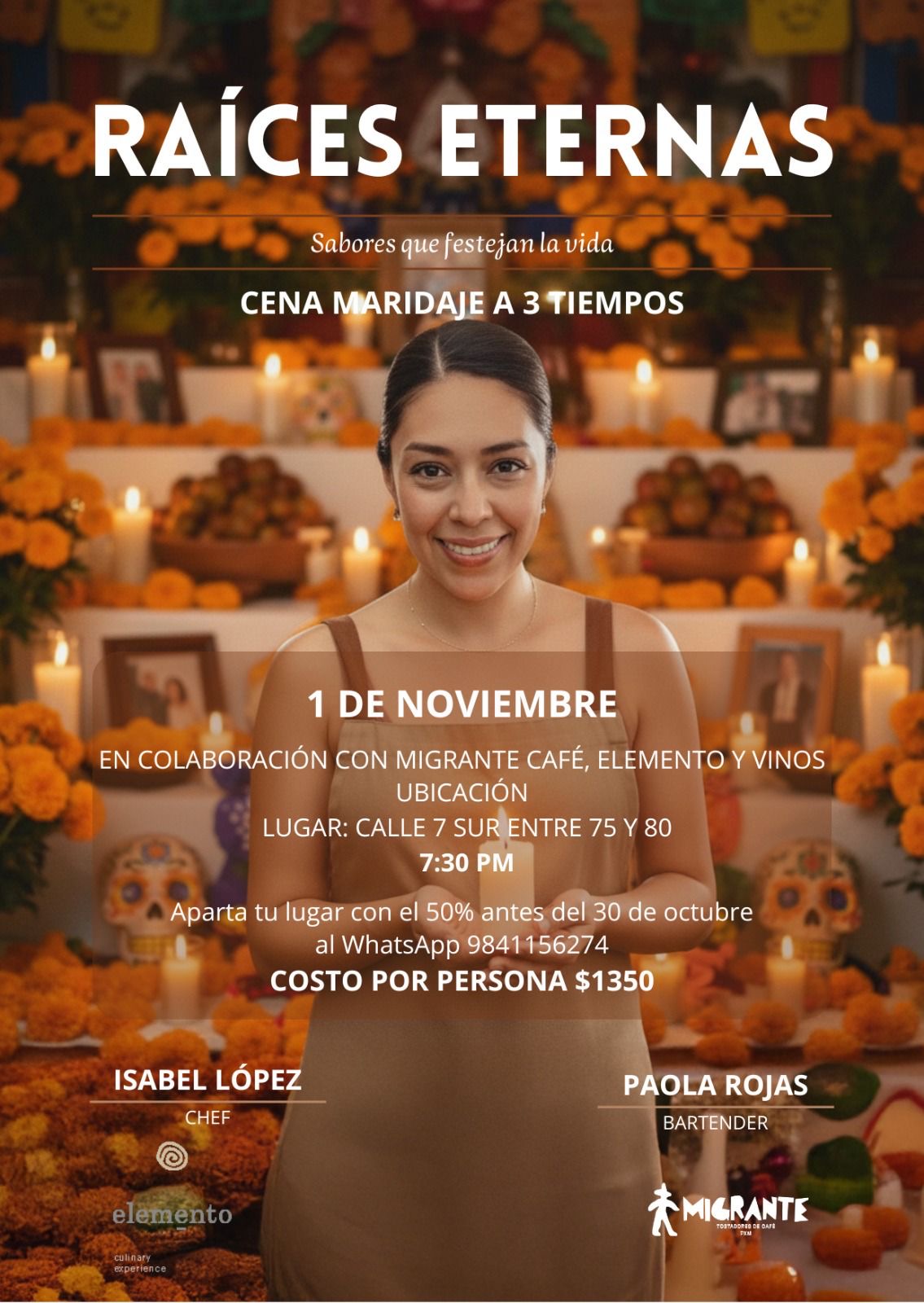 Este evento reúne el talento de Isabel López, chef de Elemento – Cocina Creativa, y Paola Rojas, bartender de @migrante_playa, quienes ofrecerán una propuesta gastronómica y sensorial única.